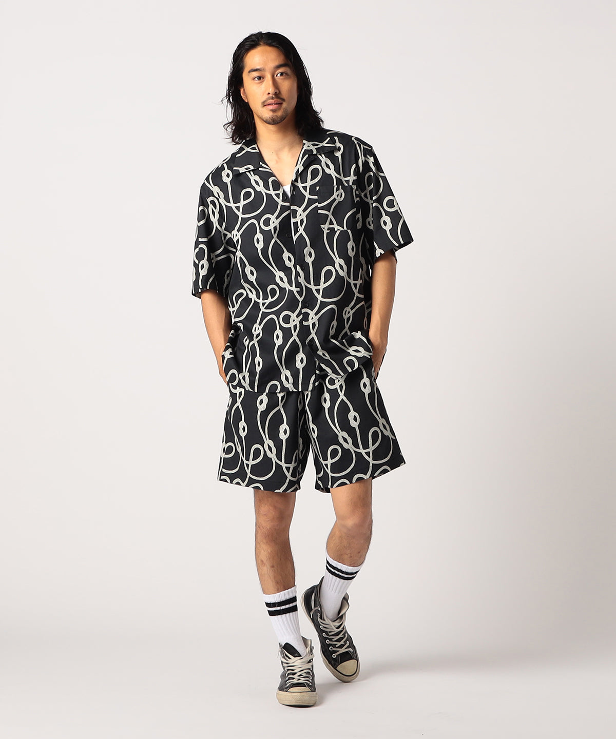 CLOUDYオリジナルのテキスタイルを大胆にプリントした膝丈のショートパンツです。昨年までのモデルよりもやや細身に仕上げました。デイリーユースはもちろん、ビーチや旅先など、シーンを問わずに着まわせます。同柄のシャツと合わせて、夏ならではの大胆な柄×柄のコーディネートがおすすめです。